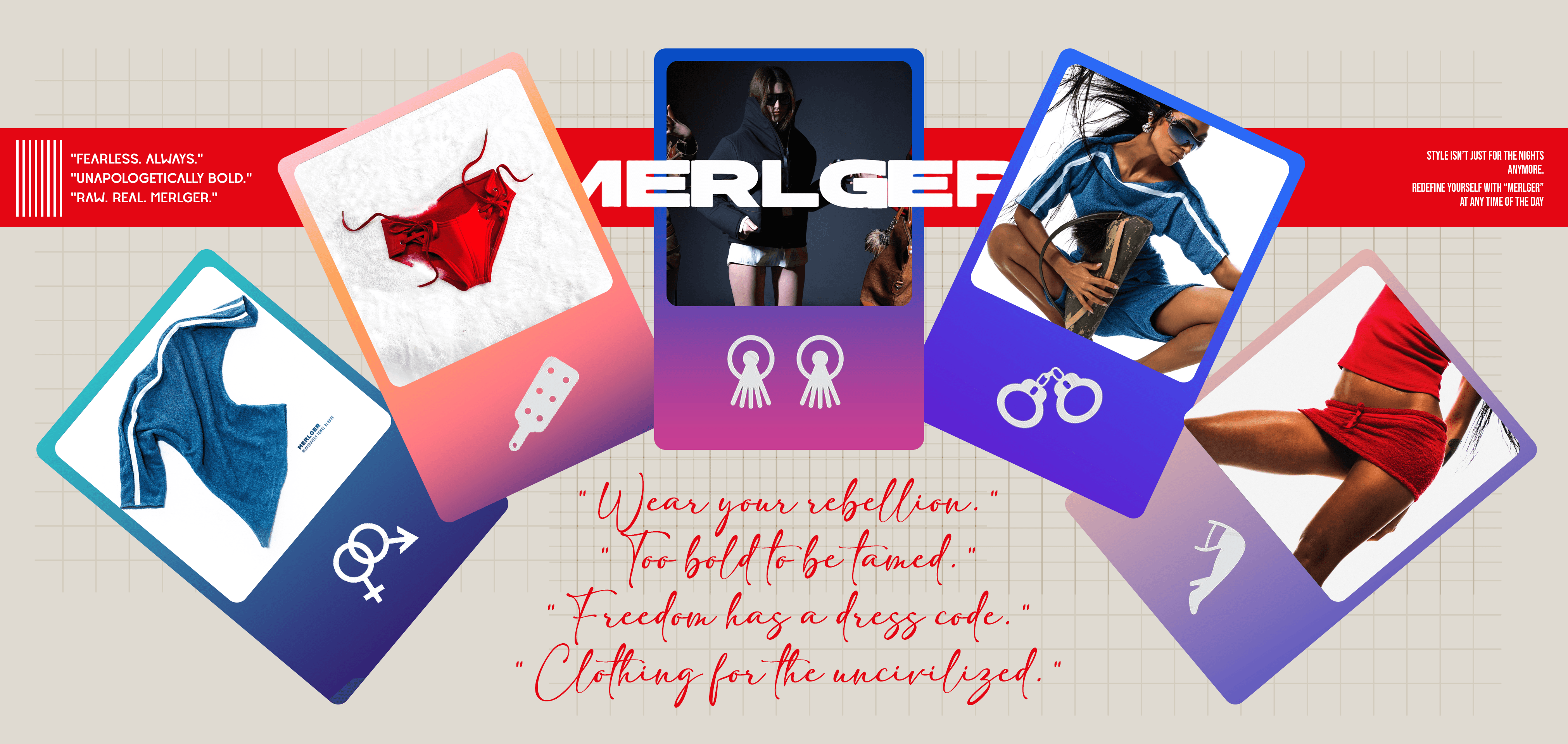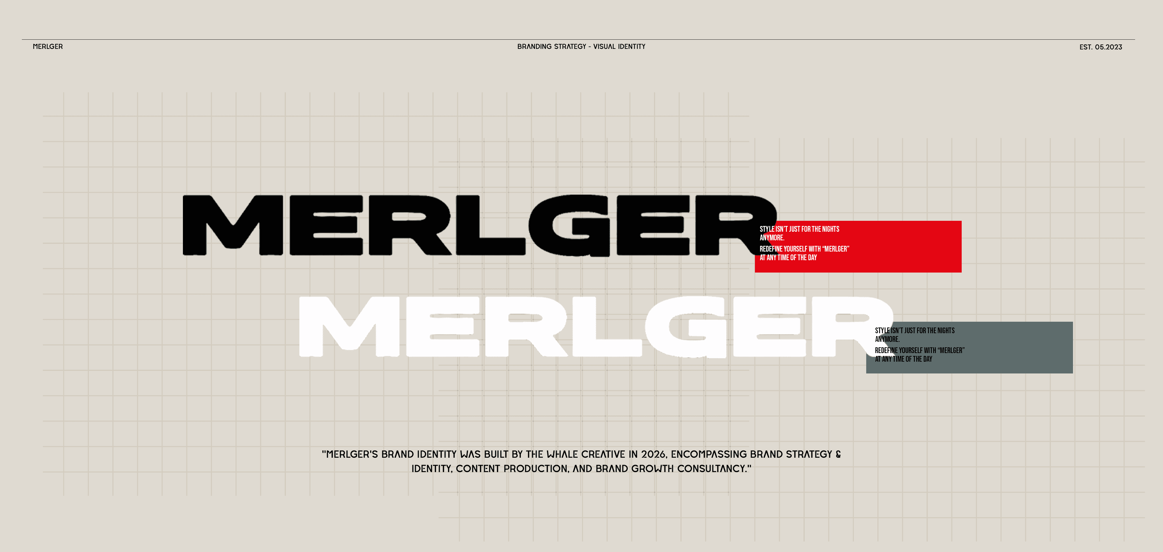 Merlger için futuristik ve cesur bir kurumsal kimlik sistemi oluşturuldu. Çöl festivali estetiği, özgür ruh ve provokatif yaşam tarzını yansıtan renk paleti, tipografi sistemi ve marka sesi tasarlandı.
